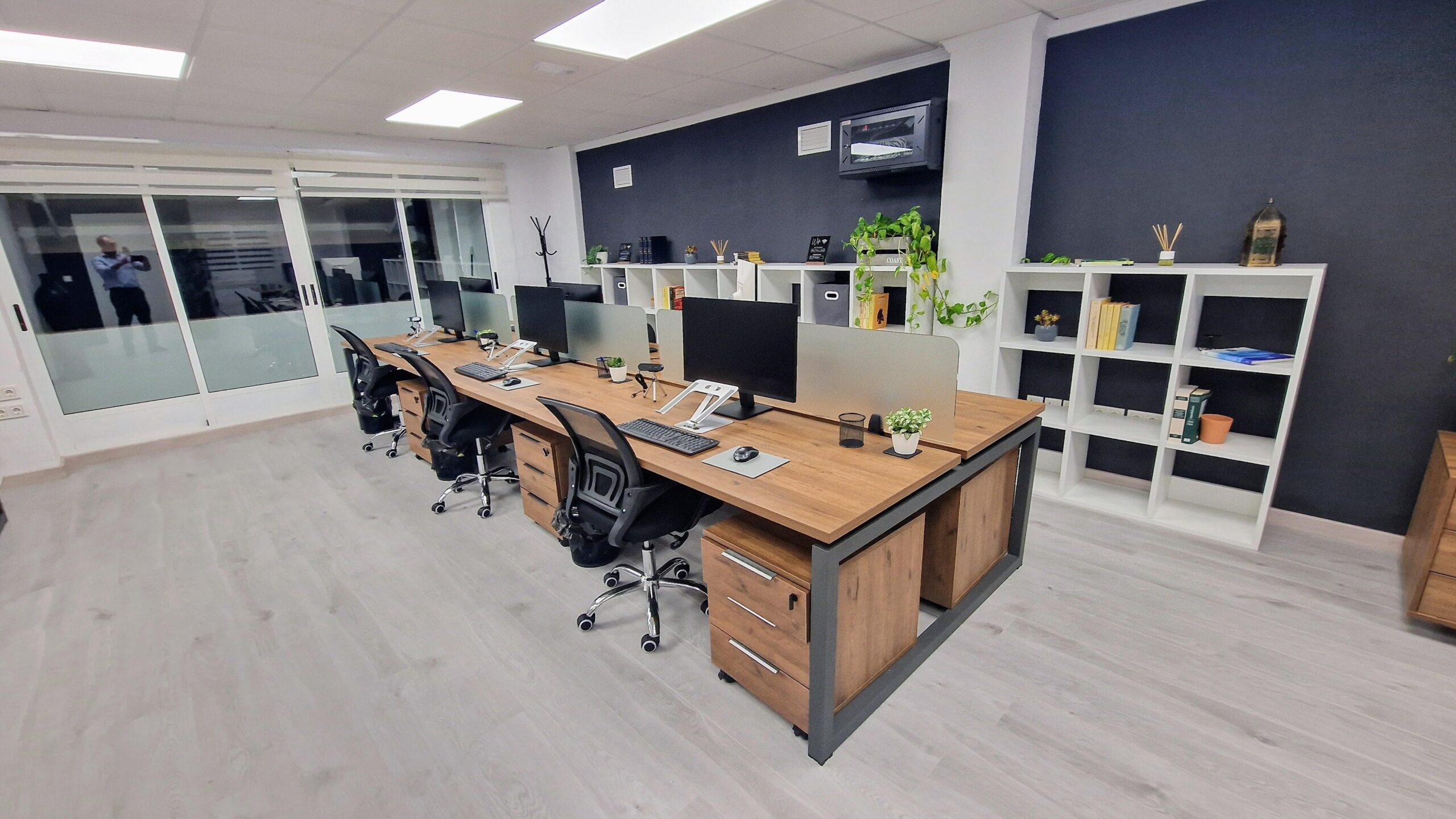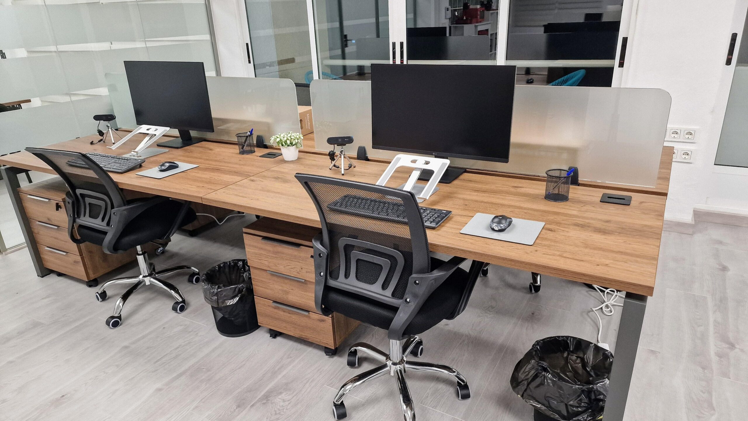 Aquí no traes tu oficina, ya la tienes instalada: puestos con monitores de 27” y la tranquilidad que los coworkings abiertos no pueden ofrecer.